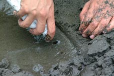 | この穴に塩を注ぎ、じっと待つと、穴からジュクジュクと、水と砂が出てくる |